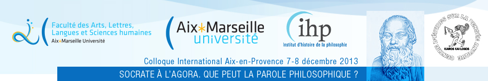 L’Institut d’Histoire de la philosophie organise en collaboration avec divers partenaires, un colloque international sur le thème « Socrate à l’agora : que peut la parole philosophique ?» qui se tiendra à Aix-en-Provence les 7 et 8 décembre 2013.